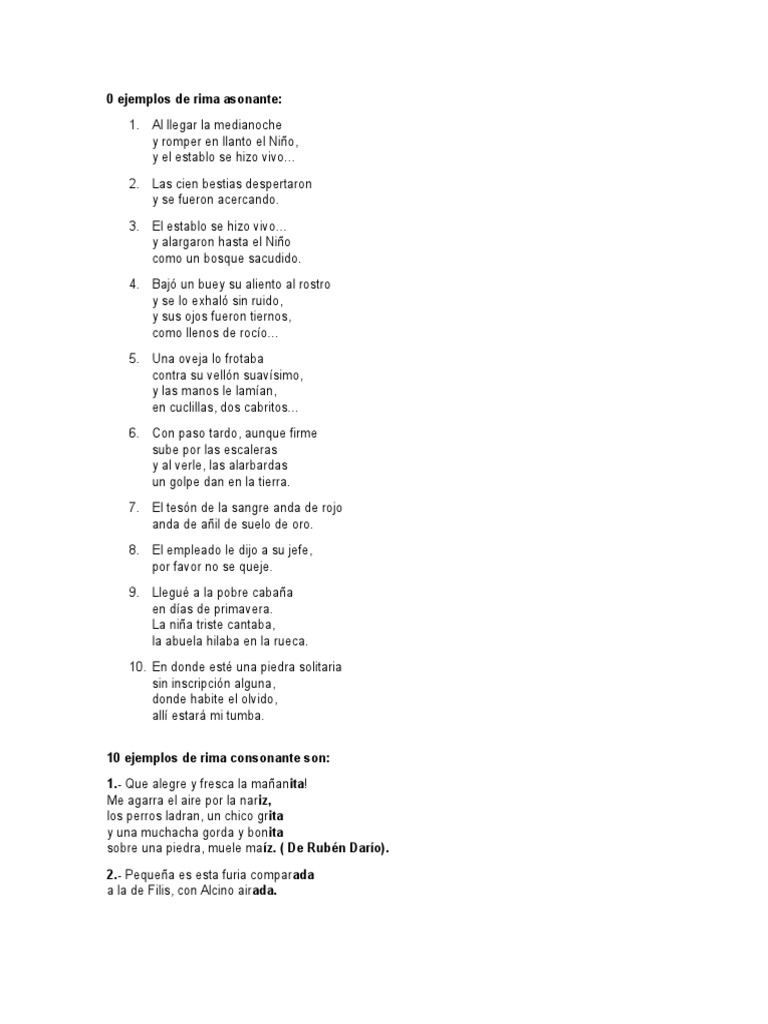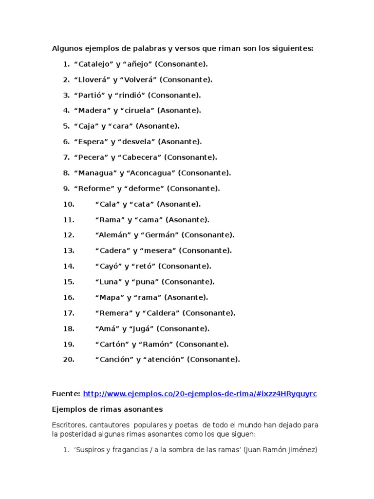 Rimas asonantes 10 ejemplos. El administrador del blog Nuevo Ejemplo 10 January 2019 también recopila otras imágenes relacionadas con los 10 palabras con rimas asonantes ejemplos a continuación. Las dos últimas sílabas de cada verso deben ser fonéticamente iguales. A las dos suena el reloj. Encuentra respuesta a tu tarea ahora en Tareas Gratis. De sonidos vocales y consonantes. 10 ejemplos de rima.