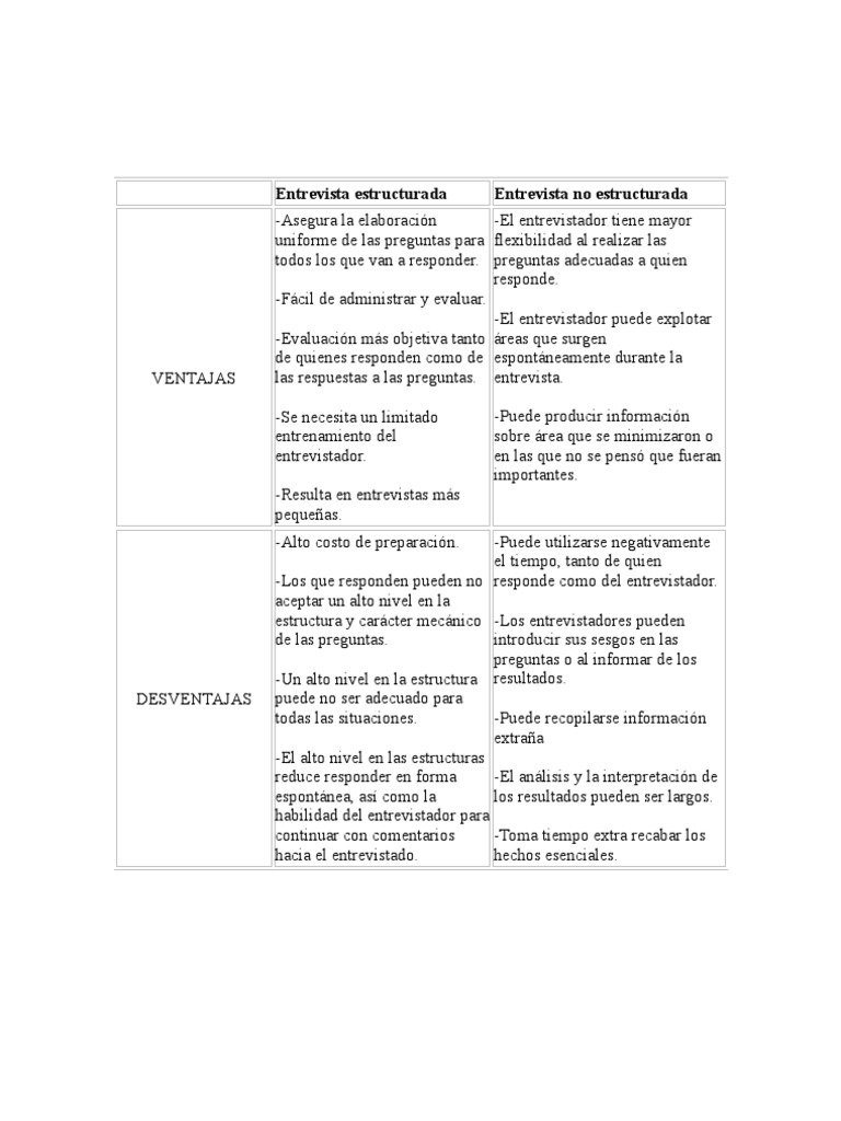 Entrevista Estructurada Y No Estructurada Pdf Cognicion Conceptos Psicologicos